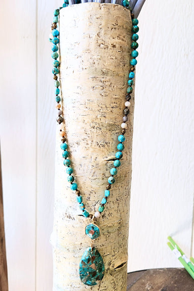 Add a burst of color and style with the Moab Colorful Stone Pendant Necklace. This long, beaded necklace showcases vibrant hues and features distin...
