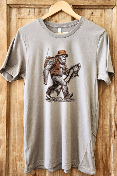 Looks like Bigfoot’s been busy. The Fishing Sasquatch T-Shirt features a fisherman Sasquatch proudly holding a giant catch — equal parts outdoors h...