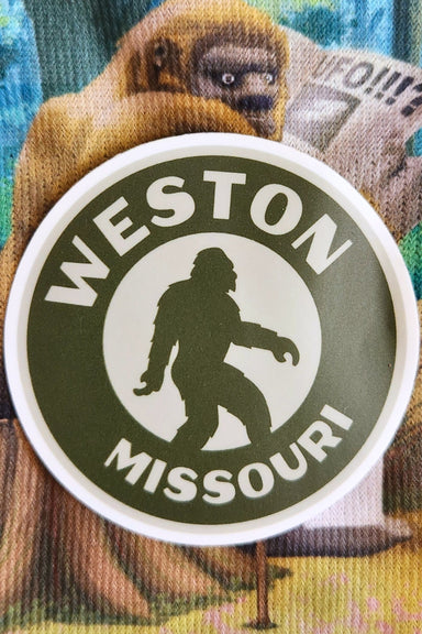 A little piece of Weston with a mysterious twist. The Weston Missouri Sasquatch Circle Badge Sticker features a circle design with Bigfoot front an...