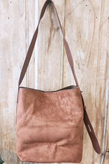 This is the kind of bag that softens everything you pair it with. The Camel Brown Microsuede Bucket Bag features the same clean, minimalist design ...
