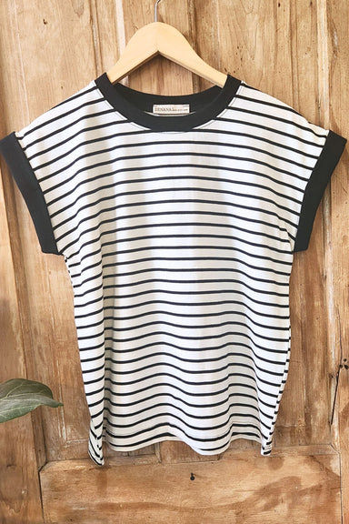 Some pieces never go out of style — this is one of them. The Cream & Black Stripe Cap Sleeve Top features a timeless horizontal stripe pattern ...