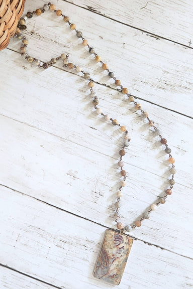 This is a true statement piece with natural character. The Patti Stone Pendant Necklace features a striking crazy lace agate pendant paired with a ...