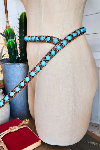 Elevate your style with this striking turquoise stone leather belt. Featuring turquoise accents set against supple leather, this snap belt combines...