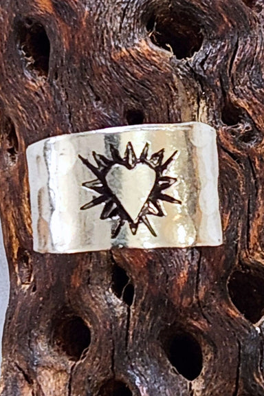 This ring has presence. The Silver Heart Cuff Ring features a striking blazing heart detail that feels both strong and symbolic — a little romantic...