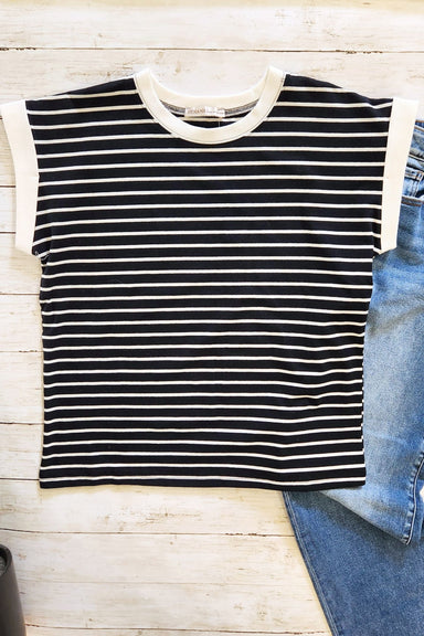 Some pieces never go out of style — this is one of them. The Black & White Stripe Cap Sleeve Top features a timeless horizontal stripe pattern ...