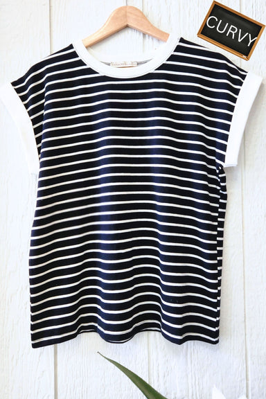 A classic that actually fits the way you want it to. The CURVY Black & White Stripe Cap Sleeve Top features timeless horizontal stripes with cr...