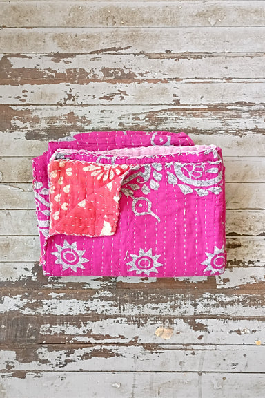 Kantha Sari Throws imported from India. Each blanket is different + one of a kind, and many have different fabrics on each side. The blanket you se...