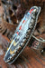 The Tibetan silver band is fully adjustable — gently spread or narrow the back of the ring to size it up or down for a comfortable fit on different fingers. Substantial, well-made, and designed to stand out, this is a high-quality statement ring with an old-world, collected-over-time feel.