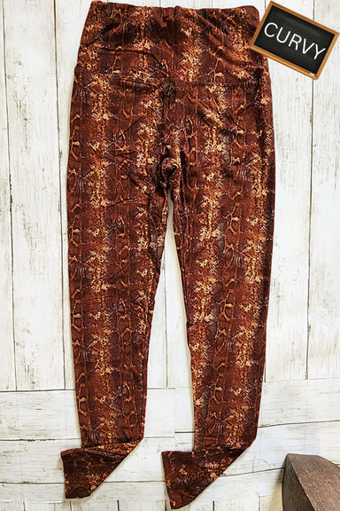 These leggings bring just the right amount of edge. The CURVY Scarlett Snake Print Yoga Leggings feature a rich mix of rust, scarlett, and brown to...