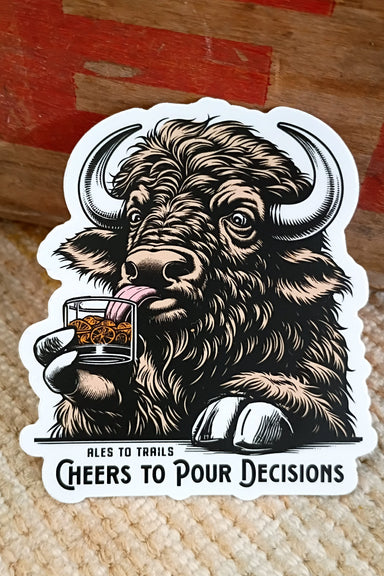 Raise a glass to questionable choices with this hilarious sticker featuring a buffalo living its best life with a scotch in hand. Perfect for lapto...