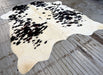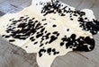 White spotted cowhide rug, tanned in Colombia. It measures 5'11 x 5'5. The hide you see is the hide you get, and ships for only $3.