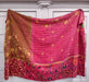 Kantha Sari Throws imported from India. Each blanket is different + one of a kind, and many have different fabrics on each side. The blanket you see is the blanket you will get.