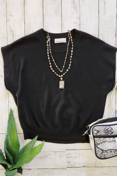 This sleek black short sleeve sweater blends comfort with style, offering a perfect layering piece for any season. Its versatile design makes it id...