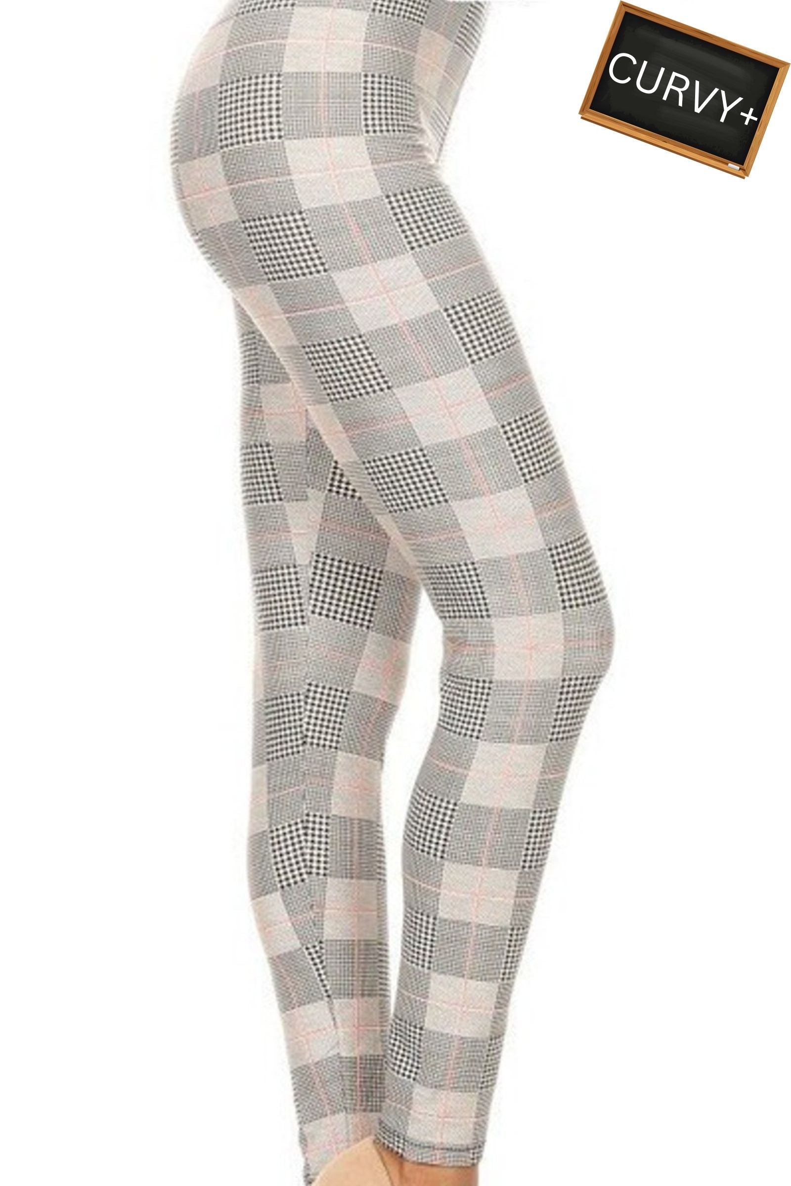 CURVY PLUS Houndstooth Plaid Elastic Waist Legging