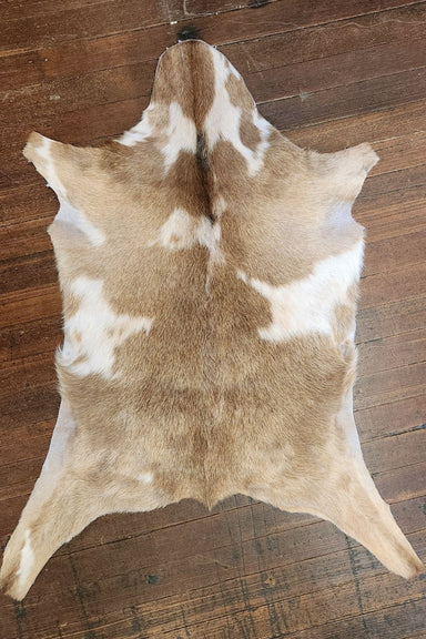 Light brown & white goat hide rug. It measures approximately 3' x 2'1. The hide you see is the hide you get and Ships for only $3. Cactus Creek...