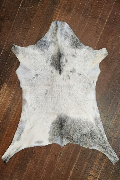 White & Black speckled goat hide rug. It measures approximately 3'4 x 2'3. The hide you see is the hide you get and Ships for only $3. Cactus C...