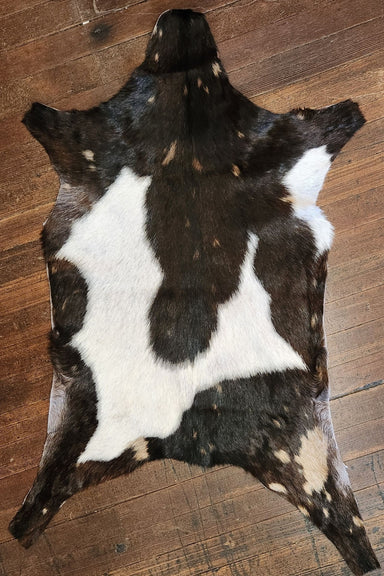 Dark Brown & White goat hide rug. It measures approximately 3'2 x 1'9. The hide you see is the hide you get and Ships for only $3. Cactus Creek...