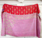 Kantha Sari Throws imported from India. Each blanket is different + one of a kind, and many have different fabrics on each side. The blanket you see is the blanket you will get.