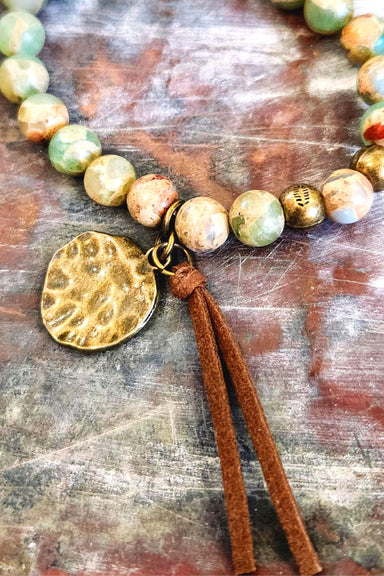 Capture the warm, vibrant spirit of autumn with the Sedona Layered Stone Necklace. Featuring a stunning agate pendant complemented by colorful bead...