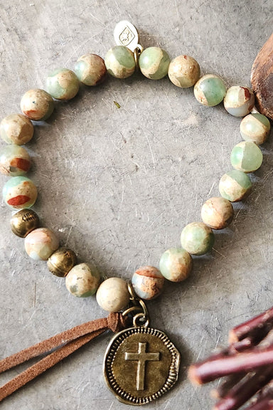 The Joan Cross Dangle Earrings combine classic bronze with a delicate beaded accent. These earrings offer a unique blend of spiritual symbolism and...