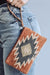 Add a pop of color to your outfit with our Rust & Green & Cream Aztec Wristlet! Crafted from durable cotton rug material, this wristlet is both stylish and practical. Perfect for holding your essentials while on-the-go.