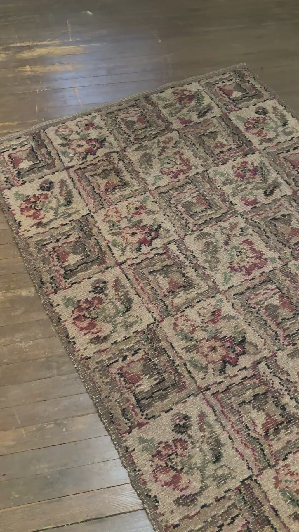 Antique Turkish Rug with Cottage Flowers - 6’8” x 3’8” (rug #008)