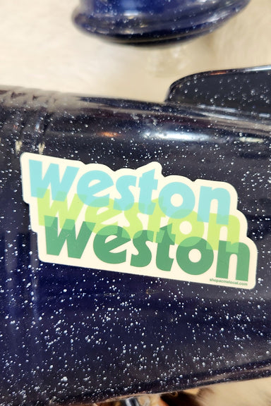 A little pop of Weston pride, done in the best colors. The Weston Retro Tri-Stack Cool Greens Sticker features “Weston” repeated three times in lig...