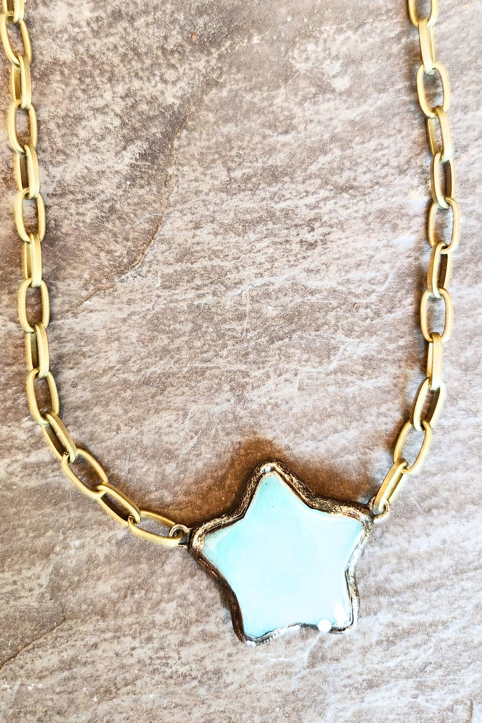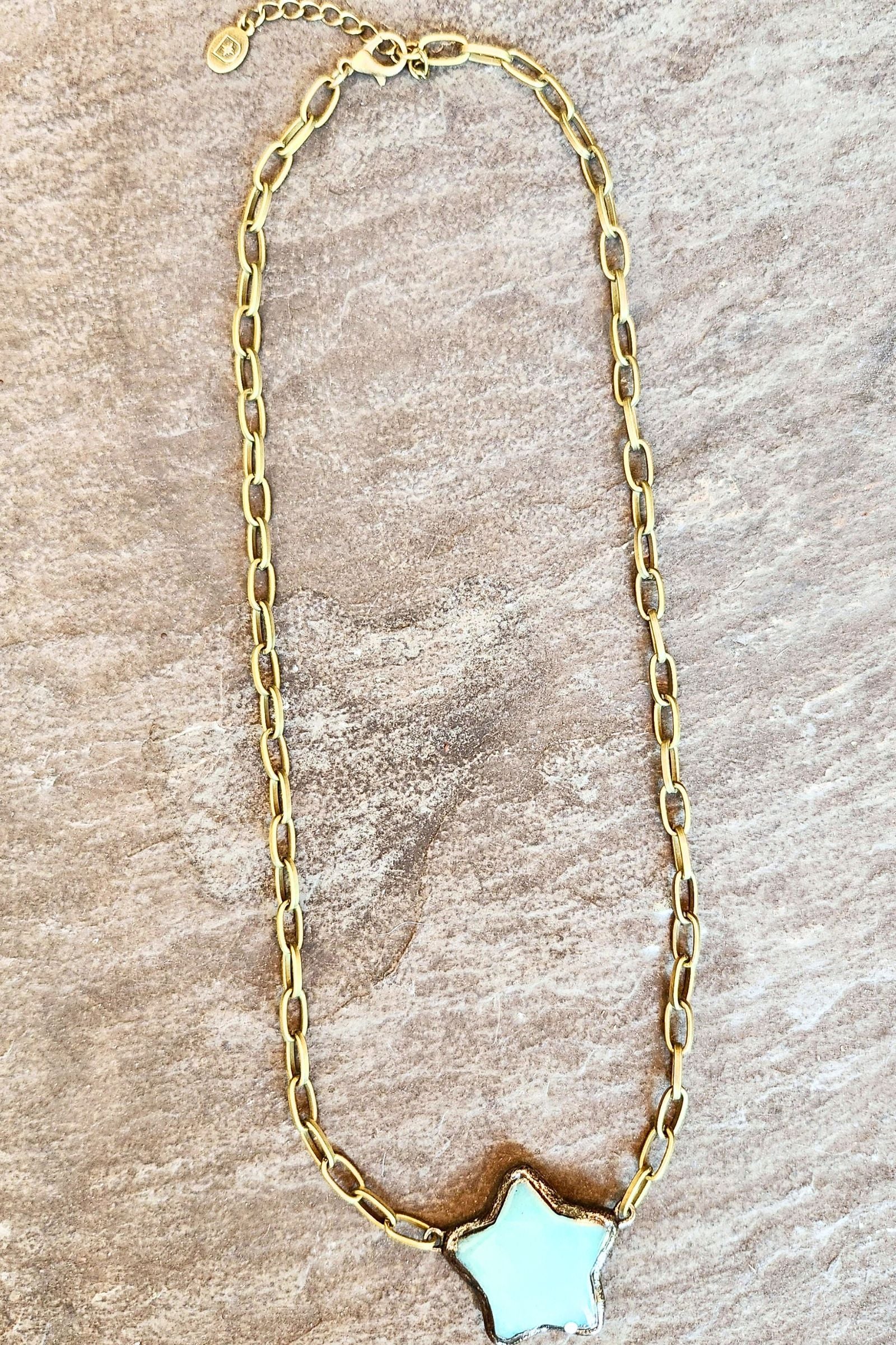 Add a touch of celestial charm to your look with the Aster Amazonite Star Pendant Necklace. Featuring a vibrant amazonite stone shaped like a star, this playful necklace brings a pop of color and a sprinkle of magic to any outfit. Perfect for those who love a little sparkle and a lot of personality!