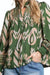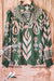 The Boho Olive Print Mix Top brings a fresh take on bohemian fashion with its eye-catching geometric print. It features a ruffled split neckline with a tie detail that adds a delicate, feminine touch. Long puff sleeves with smocked cuffs offer both style and comfort, while the relaxed, flowy fit ensures an easy, flattering silhouette.