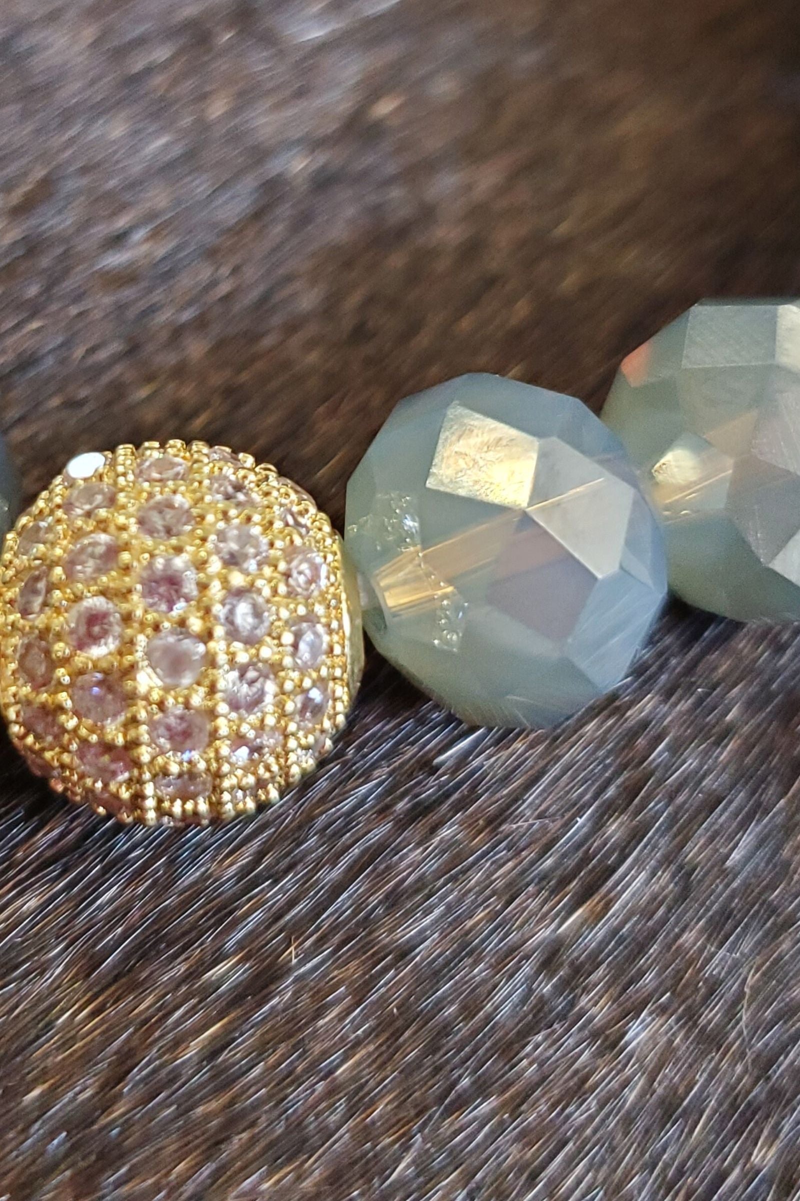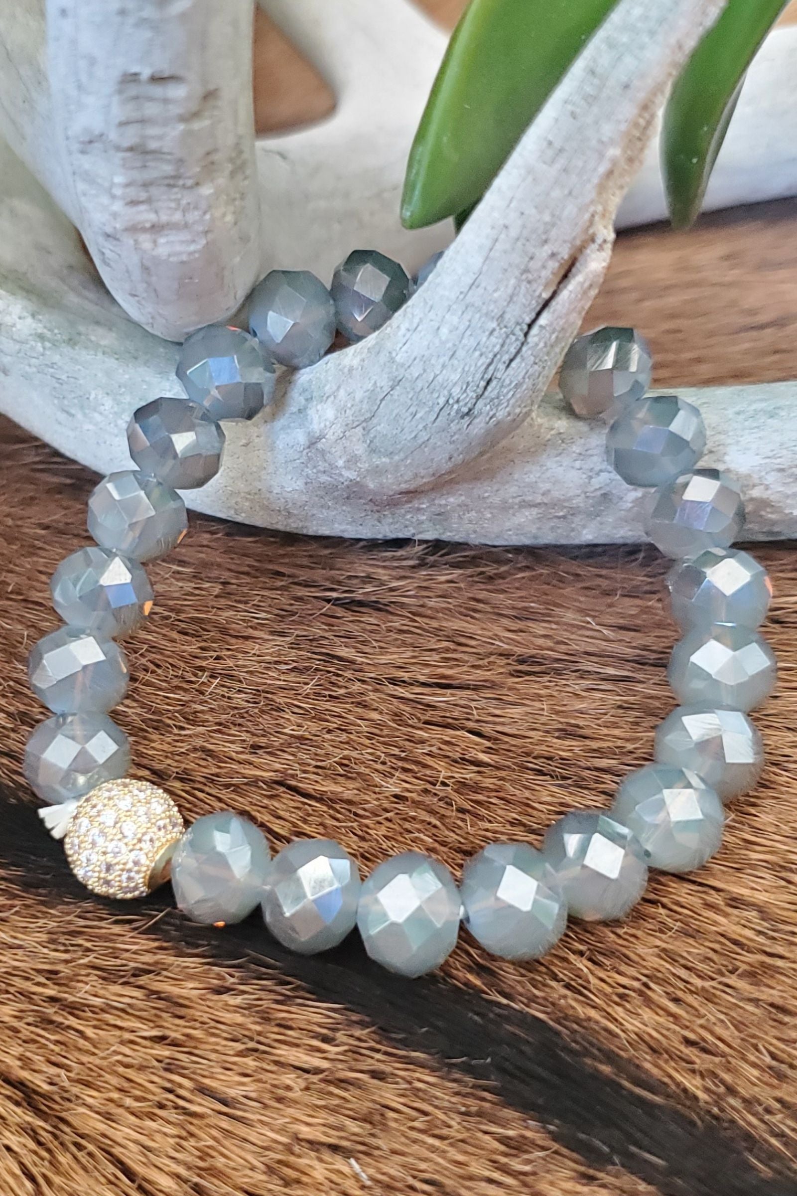 Dress up your wrist in something shiny yet understated with this monochrome crystal stretch bracelet with single golden rhinestone bead.