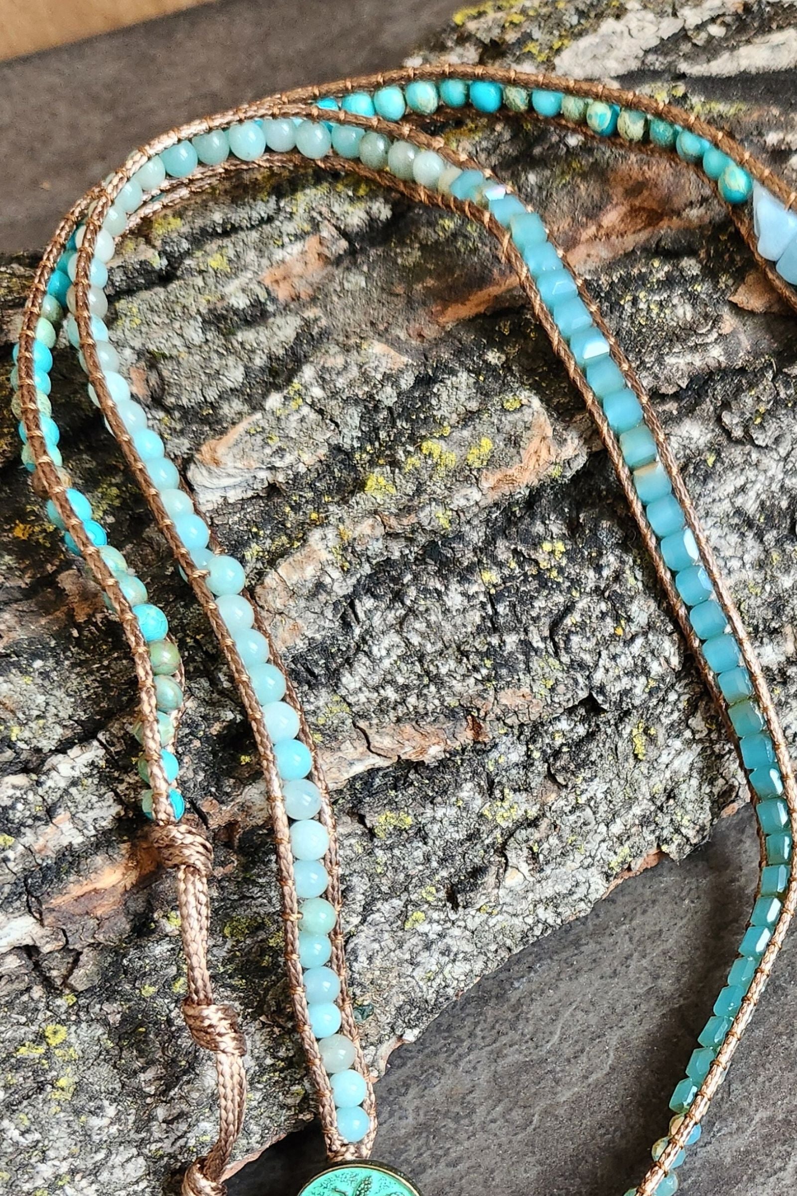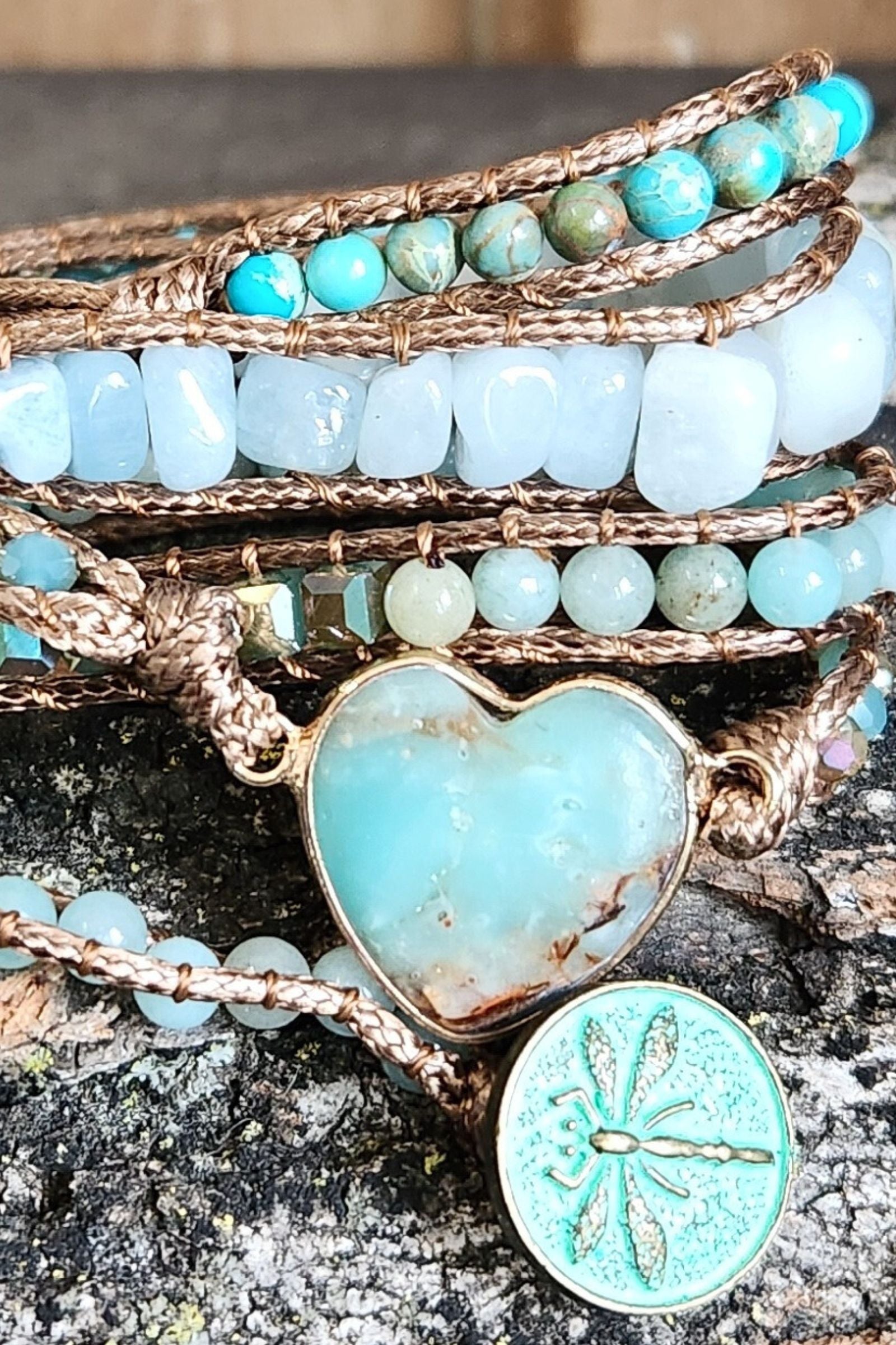 Give your wrists the boho treatment with this amazing leather and stone wrap bracelet with heart stone charm. You'll get the layered bracelet look. You can also wear it as a necklace!