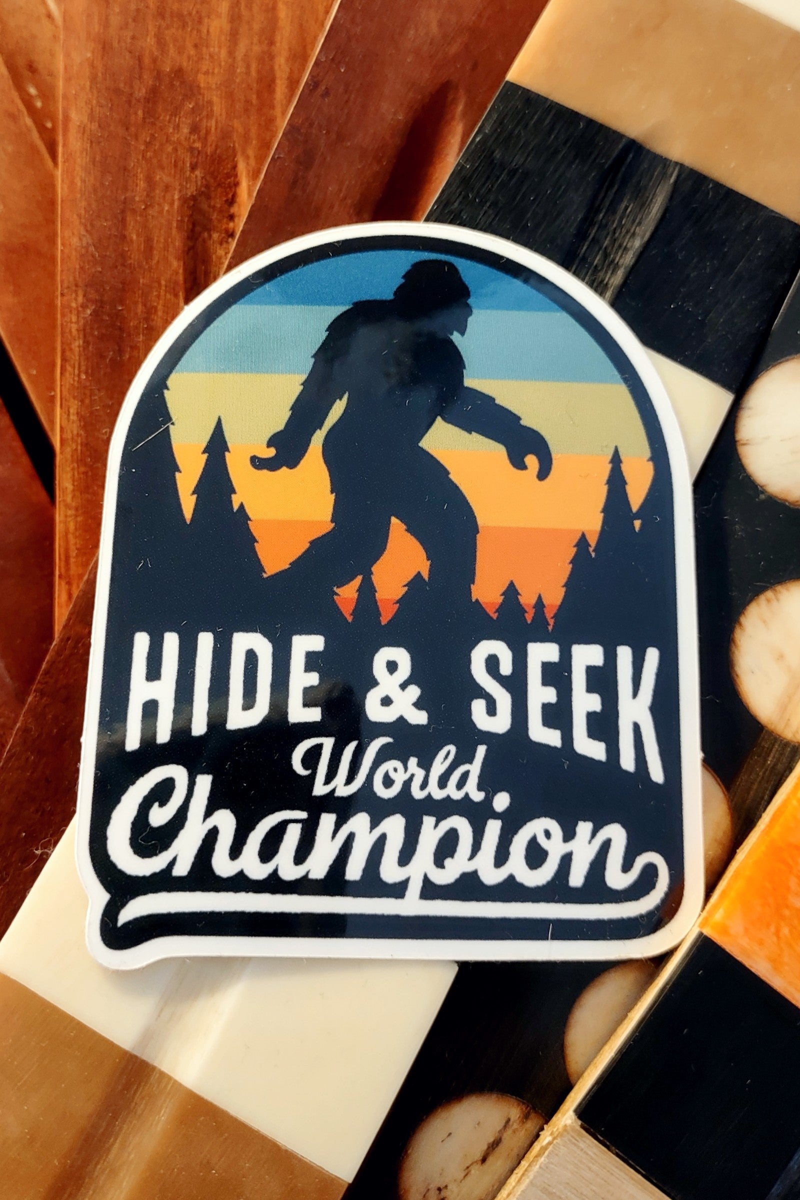 Show off your quirky sense of humor and love for this ultimate hide and seek champion with this fun sticker. Perfect for decorating your laptop, water bottle, or any other surface.