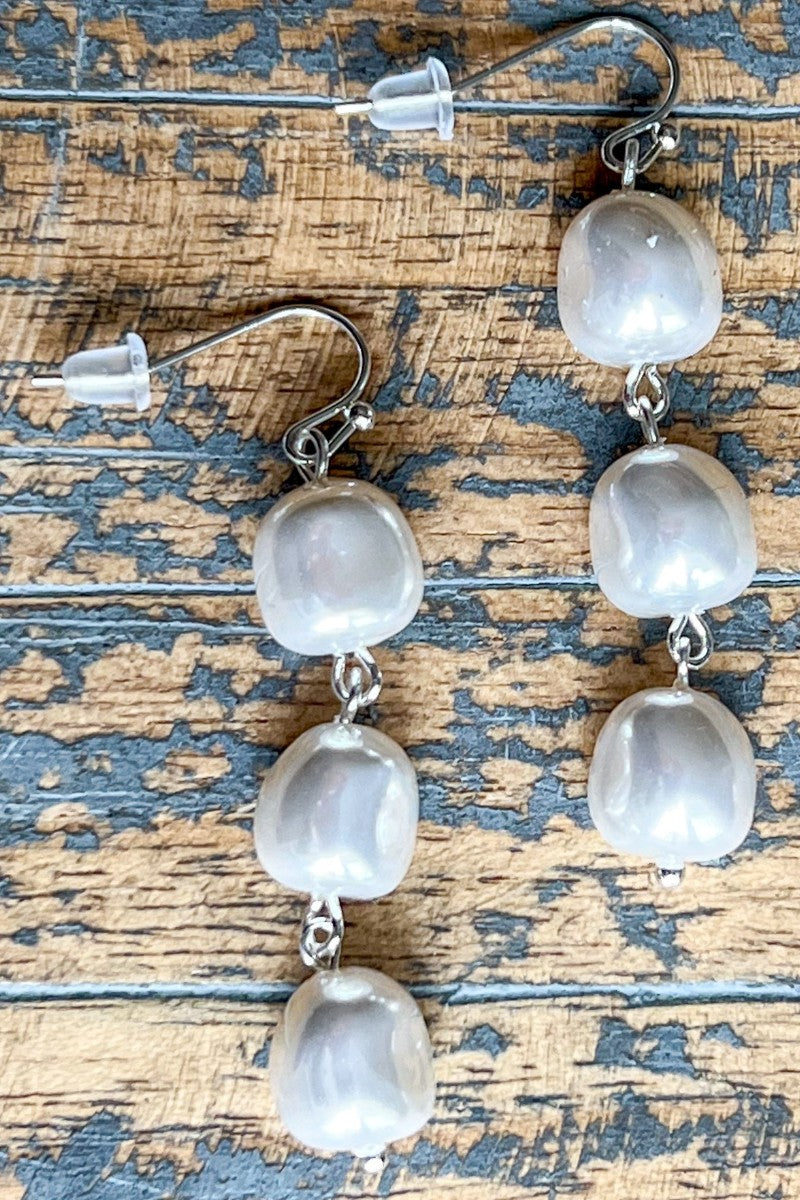 These fishhook earrings feature three lustrous pearls in a sleek, straight dangle. Lightweight and stylish, they add a touch of elegance to any outfit. Perfect for any occasion, these earrings are a must-have. Pair with your favorite t shirt and jeans or a little black dress.