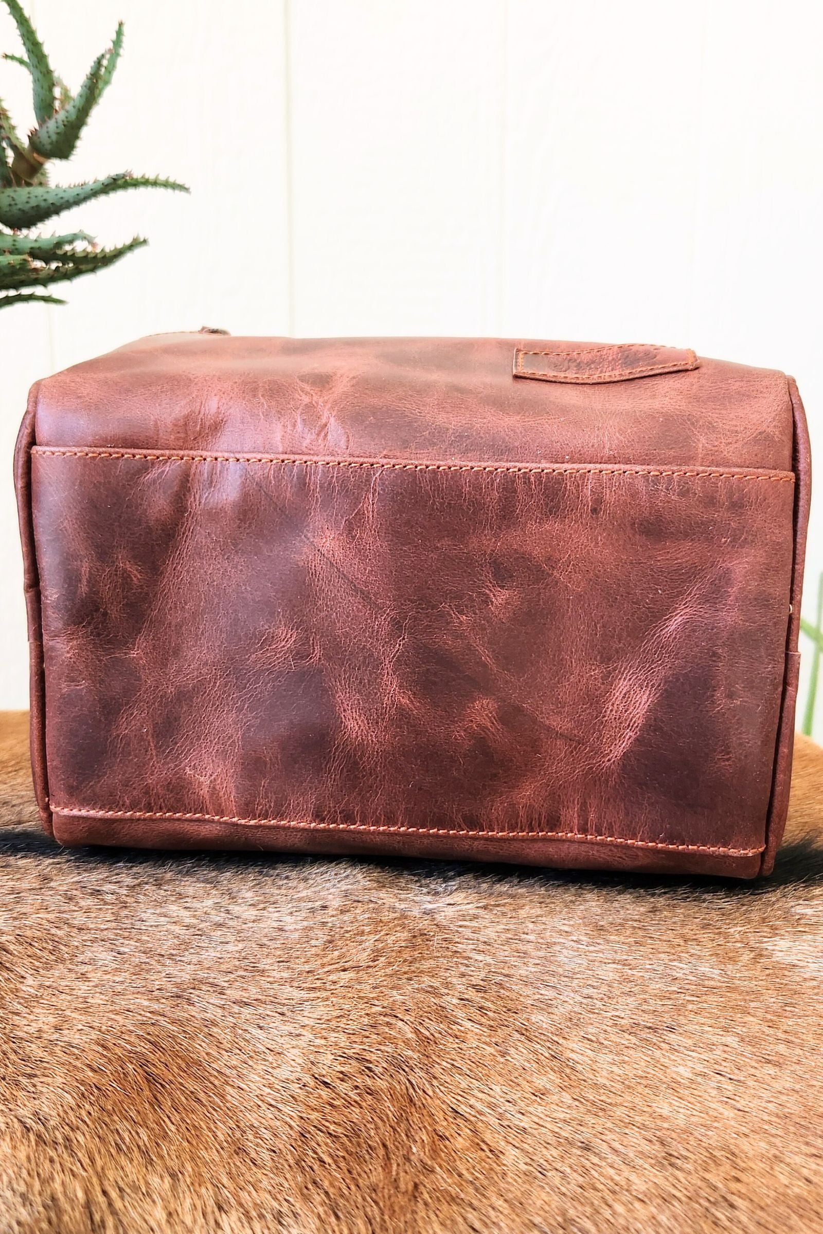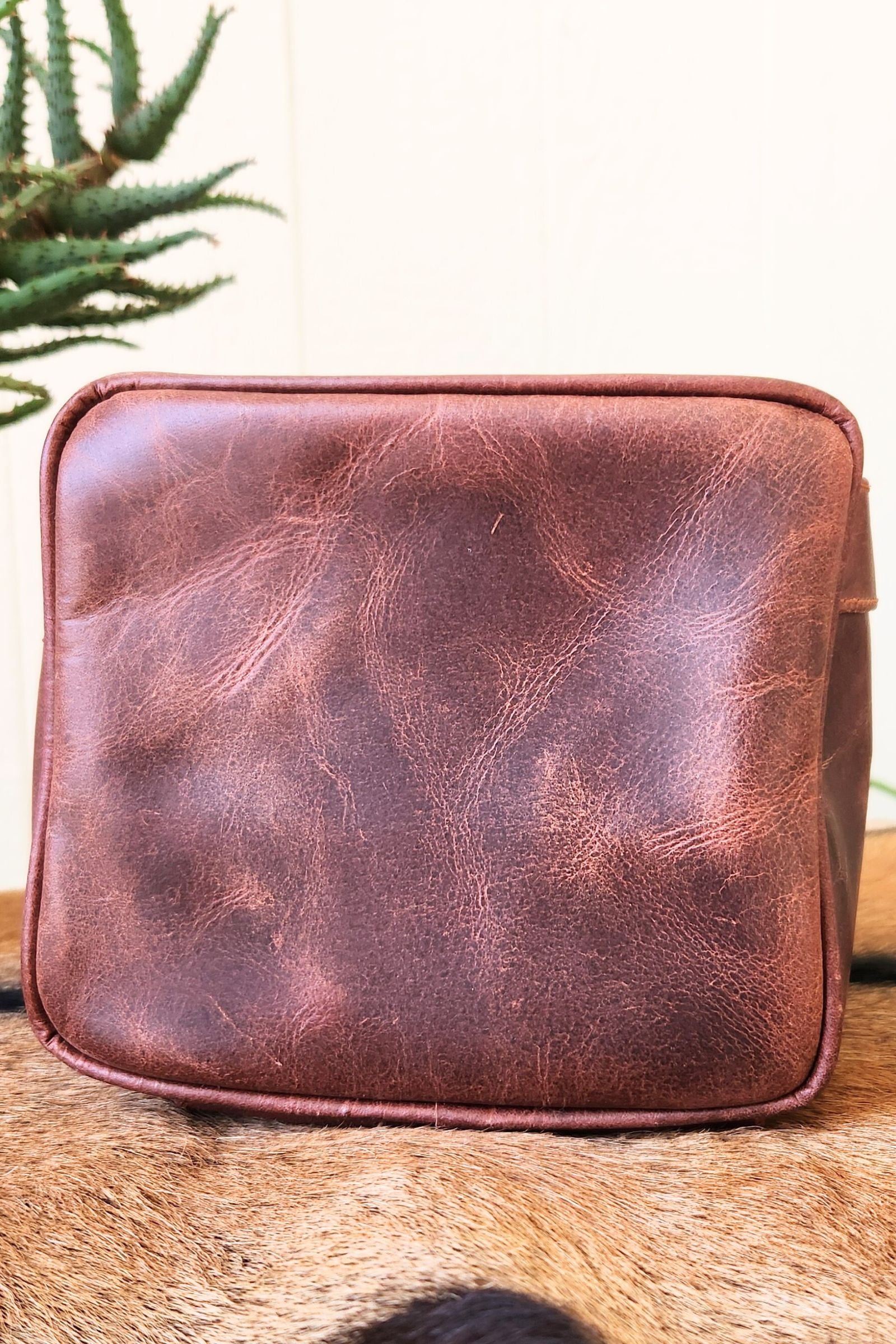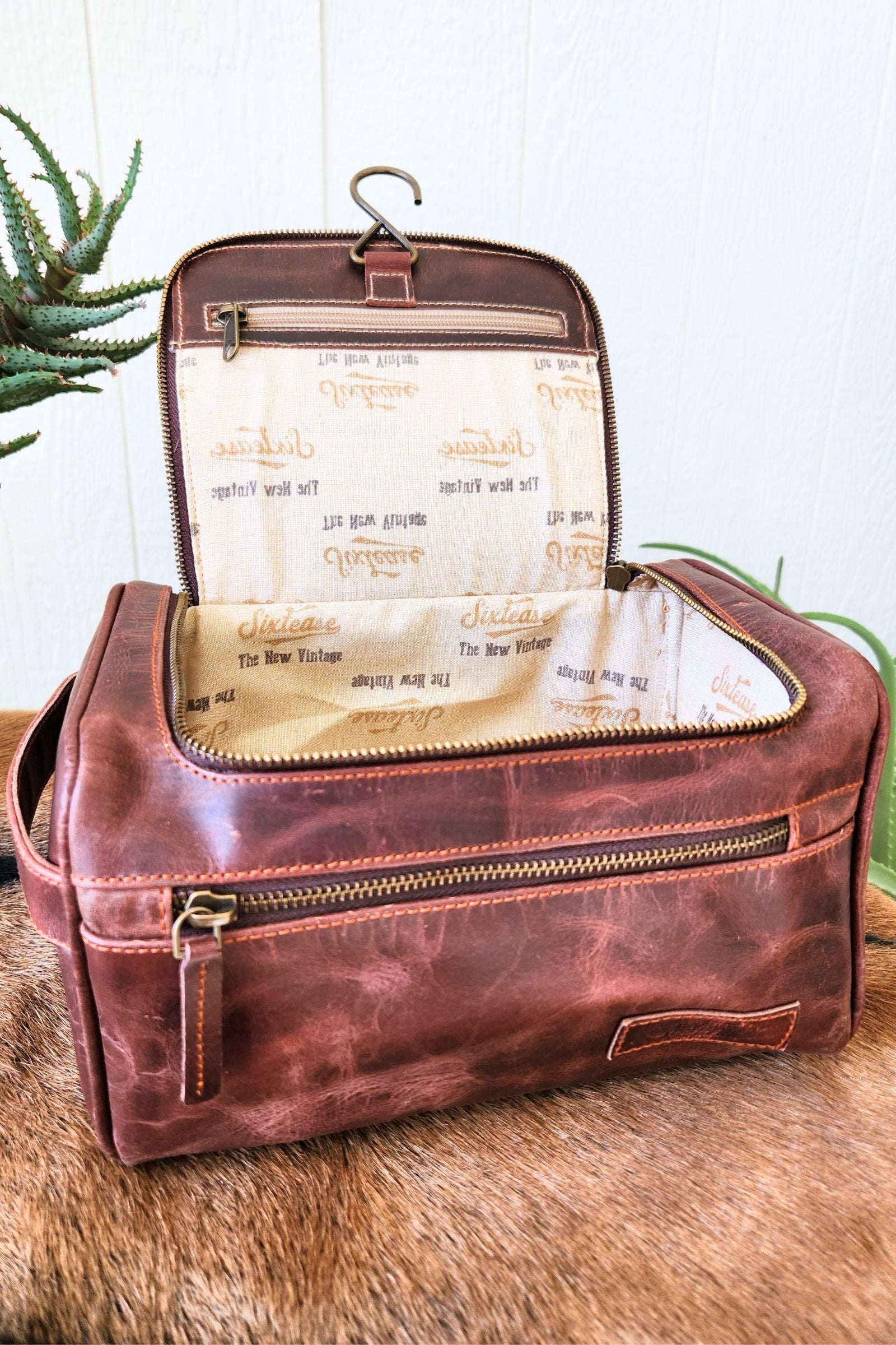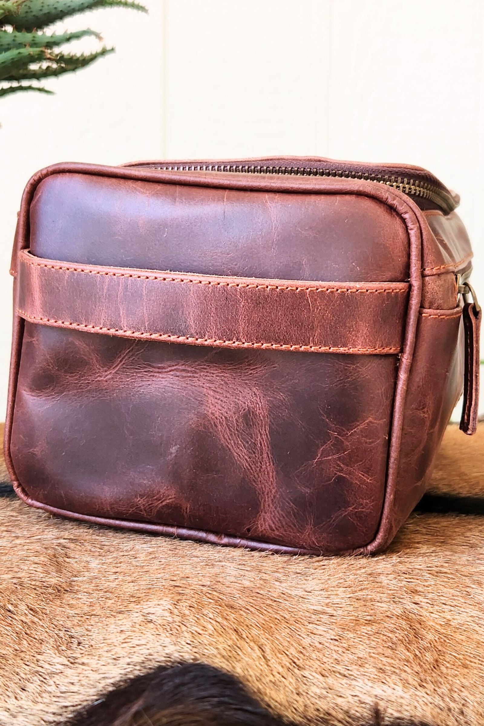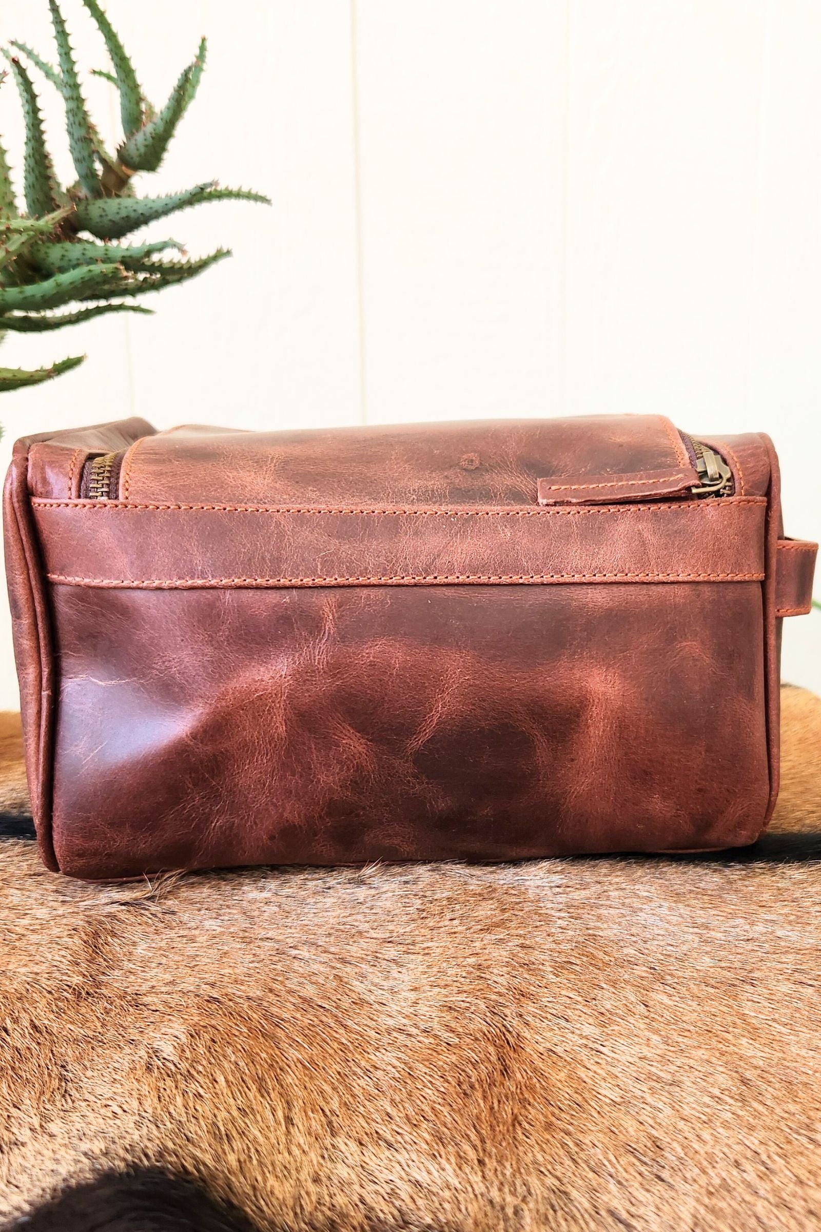 This leather utility bag is the perfect dopp kit for your toiletries on the go. Crafted from premium leather, it's both durable and stylish. This small travel bag will keep all your essentials organized and at your fingertips, making travel a breeze. (No need to compromise on style while you're on the move!)